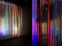 A kaleidoscope of moving image, colour and light, this immersive environment invites viewers to engage with new interpretations of the shapes and forms of home. Featuring dual projections with transparent and reflective media, this large scale immersive installation contemplates the critical potentials of home as a site of identity and belonging – a site and sight where the familiar becomes strange.
